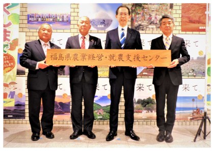 本県農業の担い手を広く確保・育成するため、令和5年4月より、県、JAグループ福島、(一社)福島県農業会議と(公財)福島県農業振興公社の職員がワンフロアに常駐する総合相談窓口「福島県農業経営・就農支援センター」を福島県自治会館1階に開所し、令和5年4月3日に開所式を行いました。